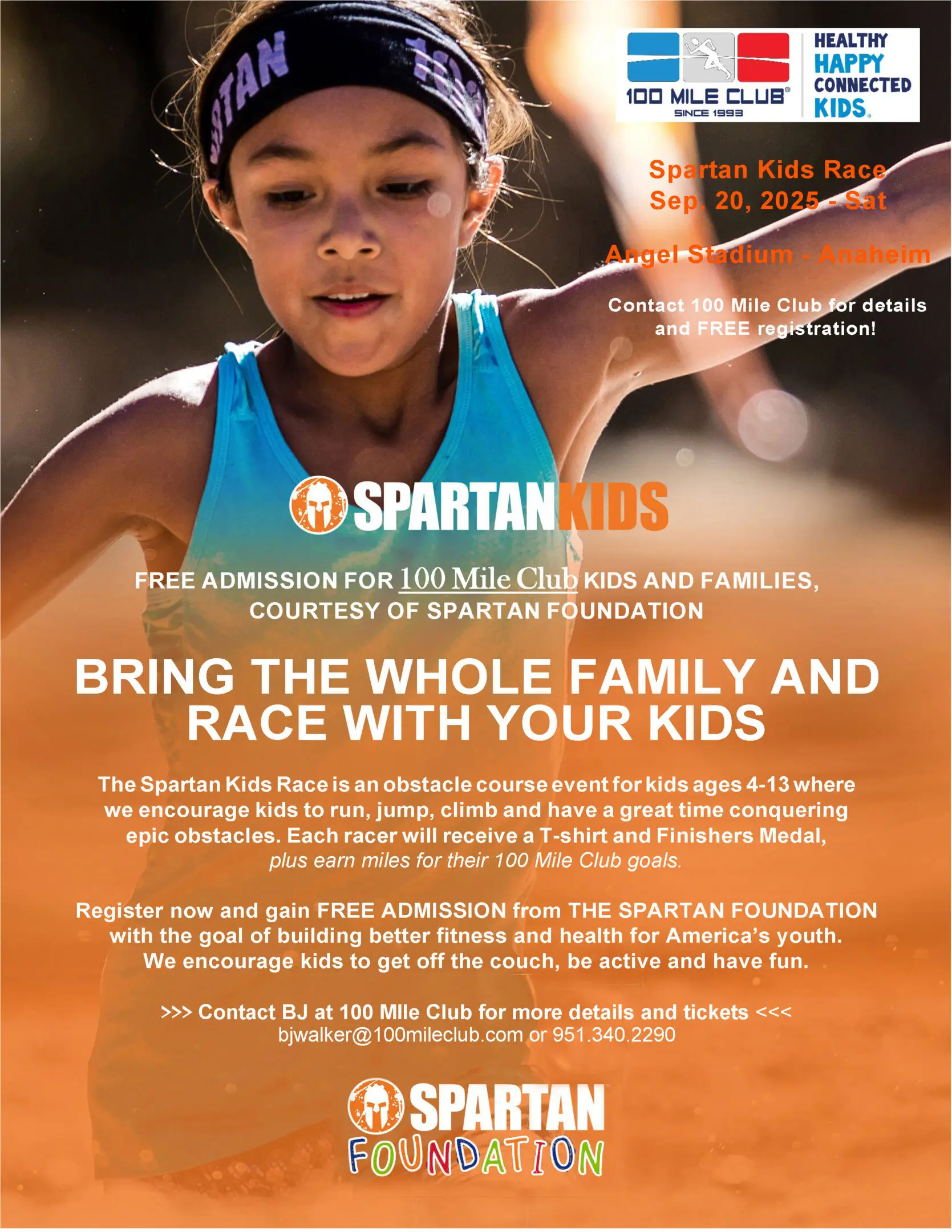 Spartan Kids – Offered FREE to our 100 Mile Club students! (please contact our office for registration and details, or call us at (951) 340-2290)